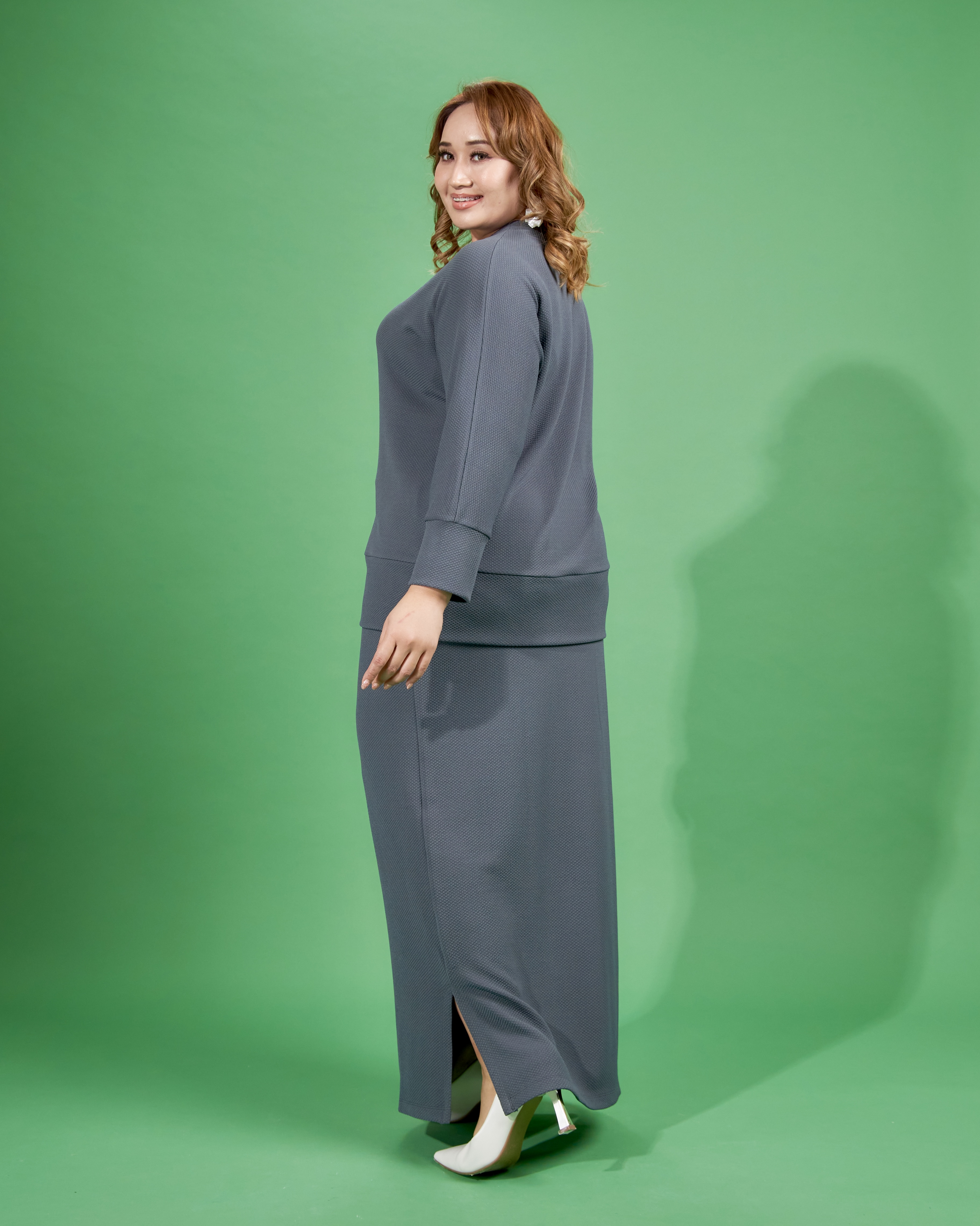 Boat Neck Sleeves with Cuff Hem with Waist Band Stretchable Relaxed Fit Material : Jacquard Knit Blouse measurement (in inches) : 38 40 42 44 Bust : 42" 44" 46" 48" Length: 28.5" 29" 29.5" 30"