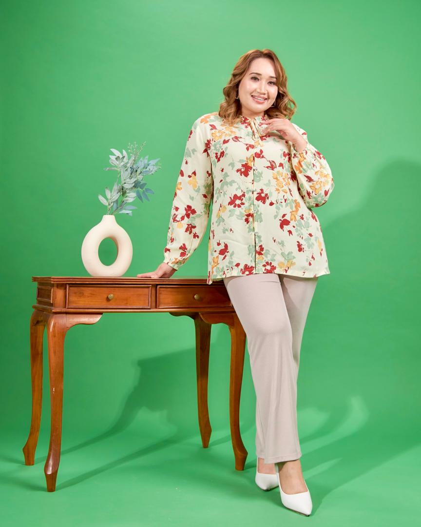 Ruffle Collar Long Sleevs with Elastic Front Button With Slit Relaxed Fit Material: Rayon Cotton Mix Non Stretchable and Without Lining Blouse measurement (in inches) : 38 40 42 44 Bust : 45" 47" 49" 51" Length: 27.5" 28" 28.5" 29"